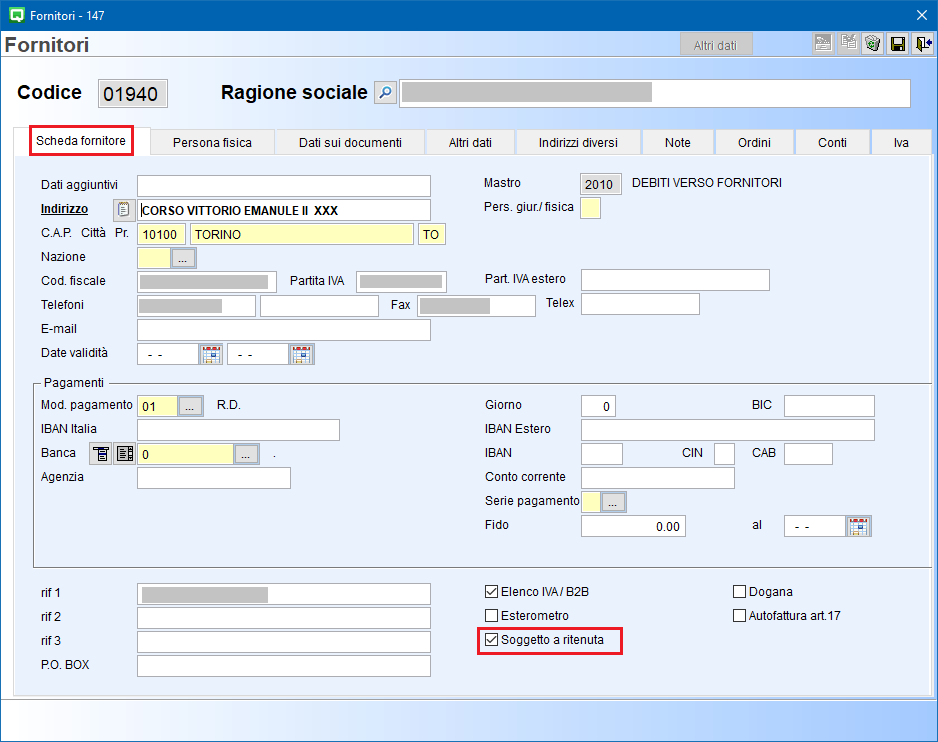 Attenzione! Il fornitore non è soggetto a ritenuta d'acconto.