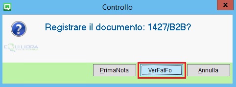 Se ci sono movimenti di magazzino da verificare riferiti al fornitore, viene richiesto se usare Registrazione Prima nota o Verifica Fatture fornitori: