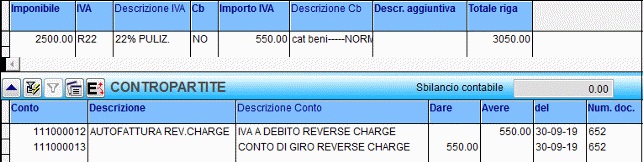 ▪si raccomanda di verificare l'esattezza delle registrazioni e che il CONTO DI GIRO IVA REV.CHARGE abbia il saldo a zero.