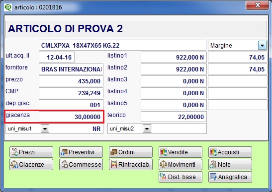 visualizzando la giacenza alla data inserita.