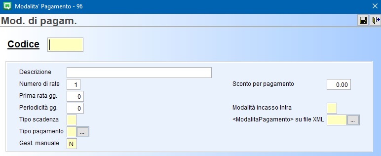 La codifica del Codice della forma di pagamento non è automatica ed è a discrezione dell’utente.