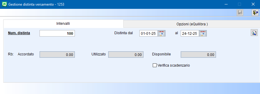Nella sezione Intervalli vengono inseriti i dati per richiamare la distinta