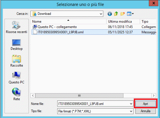Le fatture vengono scaricate nella cartella Download e da qui potranno essere prelevate per il caricamento su eQuilibra.