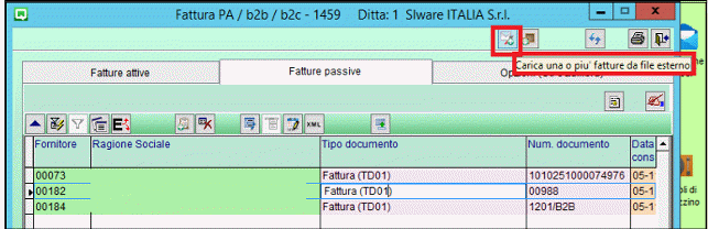 Cliccare sulla funzione Carica una o piu' fatture da file esterno