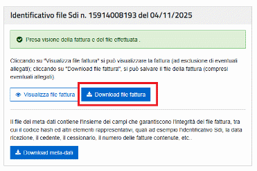 Le fatture eventualmente non recapitate saranno recuperabili solo dopo il 13 novembre, data in cui lo SDI eseguirà il processo automatico di quadratura che recapiterà quelle mancanti.