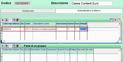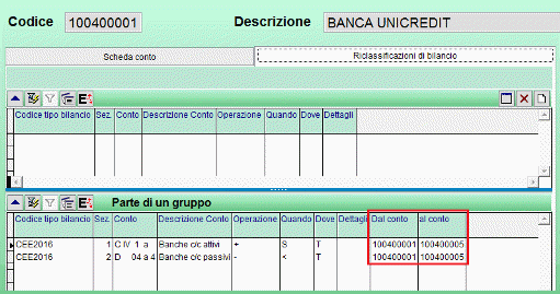Se il conto è collegato univocamente ad un conto di riclassificazione, il collegamento è presente nella parte superiore della videata ed è MODIFICABILE: