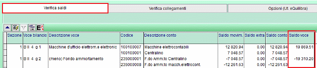 manca assegnazione se negativo: viene segnalato se un conto è stato collegato solo con saldo positivo, in tal caso occorre valutare il saldo: se positivo il conto viene riclassificato, se il saldo è negativo occorre collegarlo “solo se saldo negativo”;