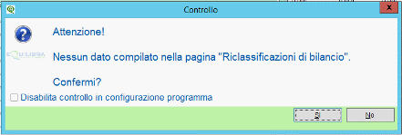 La richiesta di “disabilitare il controllo” serve soltanto a coloro che non utilizzano il bilancio riclassificato.