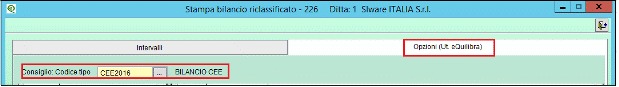 Nelle Opzioni ora è possibile indicare il tipo codice di bilancio utilizzato in modo da non doverlo indicare ogni volta (es. CEE2016). Occorre entrare come utente eQuilibra.