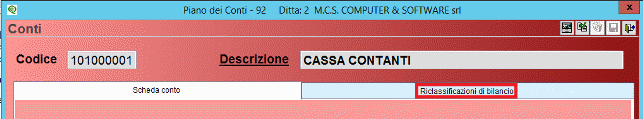 Dal piano dei conti di contabilita' (C – 1.1.1) è ora possibile vedere se il conto ha un collegamento alle voci del bilancio riclassificato.