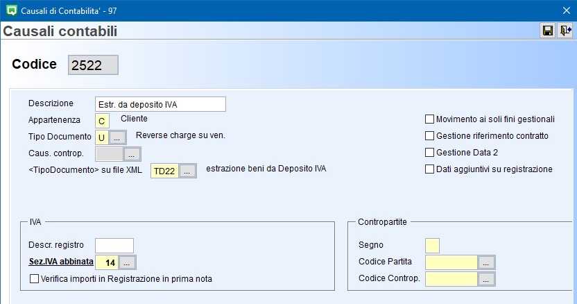 1. Creazione causale apposita