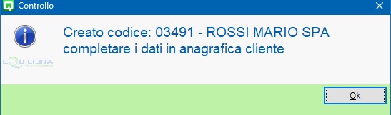 Successivamente sarà aperta l’anagrafica del cliente per il completamento dei dati: